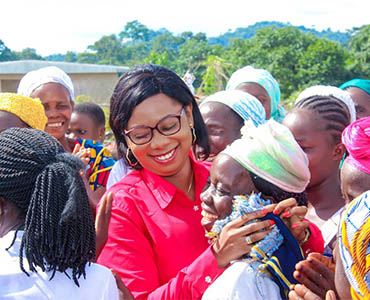 LA PRÉSIDENTE MME EDWIGE DIETY VISITE LE 1ER BÉBÉ NE SUR LES LITS OFFERTS PAR LA FONDATION A LA MATERNITÉ DE GOPOUPLEU