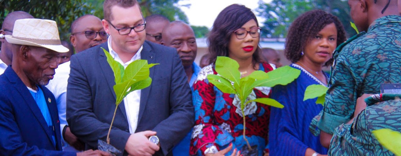 PLANTING D'ARBRES EN COMPAGNIE DU REPRÉSENTANT DE L’AMBASSADEUR DE FRANCE ET LA PRÉSIDENTE DE L’ONG LE MÉRITE